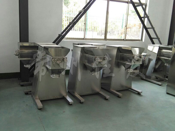 YK160推車式制粒機(jī)與GHL系列(高效濕法造粒機(jī))和FL(PGL)系列(沸騰制粒干燥機(jī))組成聯(lián)合機(jī)組,形成管道化生產(chǎn),減少二次污染,生產(chǎn)效率高。
